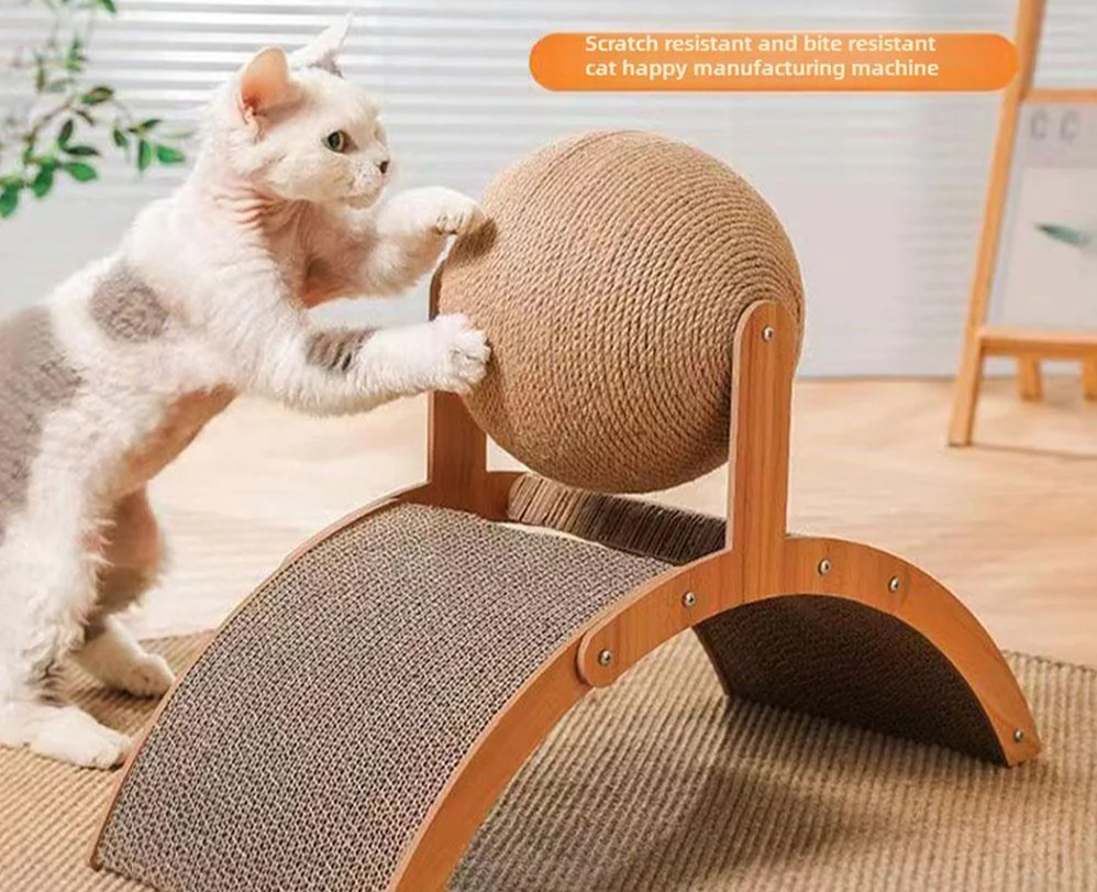 Stimuleer het speelinstinct van jouw kat én bescherm je interieur met de KlimPaws Krabbol Kattenkrabber – een unieke combinatie van stijlvol houten design, duurzame materialen en interactief speelplezier. Deze innovatieve krabber beschikt over een krabkolom van natuurlijk sisaltouw in bolvorm, stevig bevestigd aan een elegante houten basis.