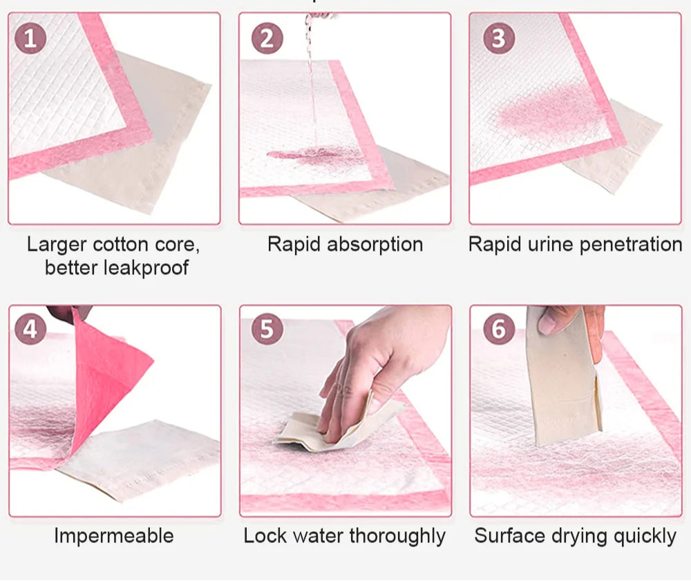 Elke verpakking bevat 50 stuks trainingsmatten in verschillende formaten – geschikt voor elk hondenras, van klein tot groot. Dankzij het ademende en vochtregulerende oppervlak blijven de pootjes droog en fris, terwijl de onderlaag je vloer perfect beschermt tegen doorlekken of geurtjes.