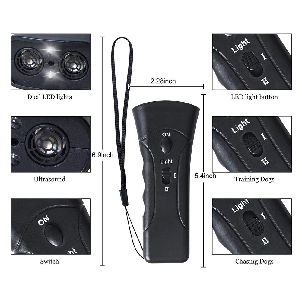 Ben je op zoek naar een veilige en doeltreffende manier om ongewenst blafgedrag of storend gedrag van je hond onder controle te krijgen? De SilentGuard Anti-Blaf Trainer biedt de perfecte combinatie van ultrasone trainingstechnologie en een handige LED-zaklampfunctie. Dit innovatieve apparaat is ontworpen om jouw hond op een diervriendelijke manier te trainen, zonder gebruik van pijn of harde straffen.