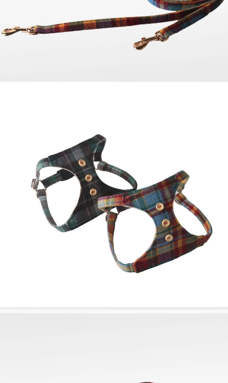 πΆ British Plaid β Verstelbaar Hondenharnas met Multifunctionele Lijnset in Britse Stijl