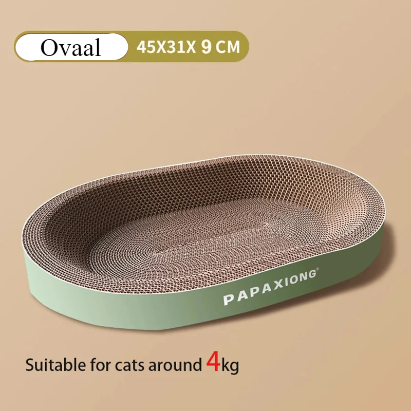 Het ovale ontwerp is niet alleen ideaal om te krabben, maar vormt ook een fijne nestvormige ligplek. Of jouw kat nu wil relaxen, zijn nagels wil scherpen of gewoon lekker wil spelen: dit product biedt alles in één.