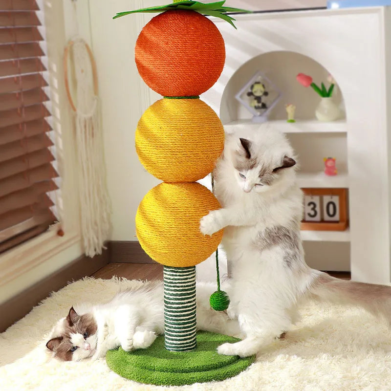 KlimPaws VerticalPlay Krabpaal β Stijlvolle Hoge Krabpaal met 3 Speelballetjes en Natuurlijk Sisal