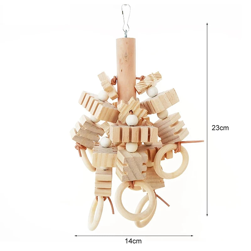 Stimuleert natuurlijk gedrag: Dit houten speeltje is ontworpen om het instinct van uw papegaai om te kauwen en te scheuren te bevredigen, waardoor zijn snavel kort en gezond blijft. Het biedt ook mentale stimulatie, waardoor verveling en destructief gedrag worden verminderd.