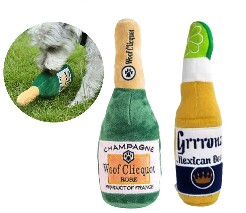 Het heldergele wijnfles-design met speelse details trekt de aandacht en houdt je hond actief en gelukkig. Dankzij de zachte maar stevige fleece kan hij veilig kauwen, trekken en spelen zonder snel slijtage