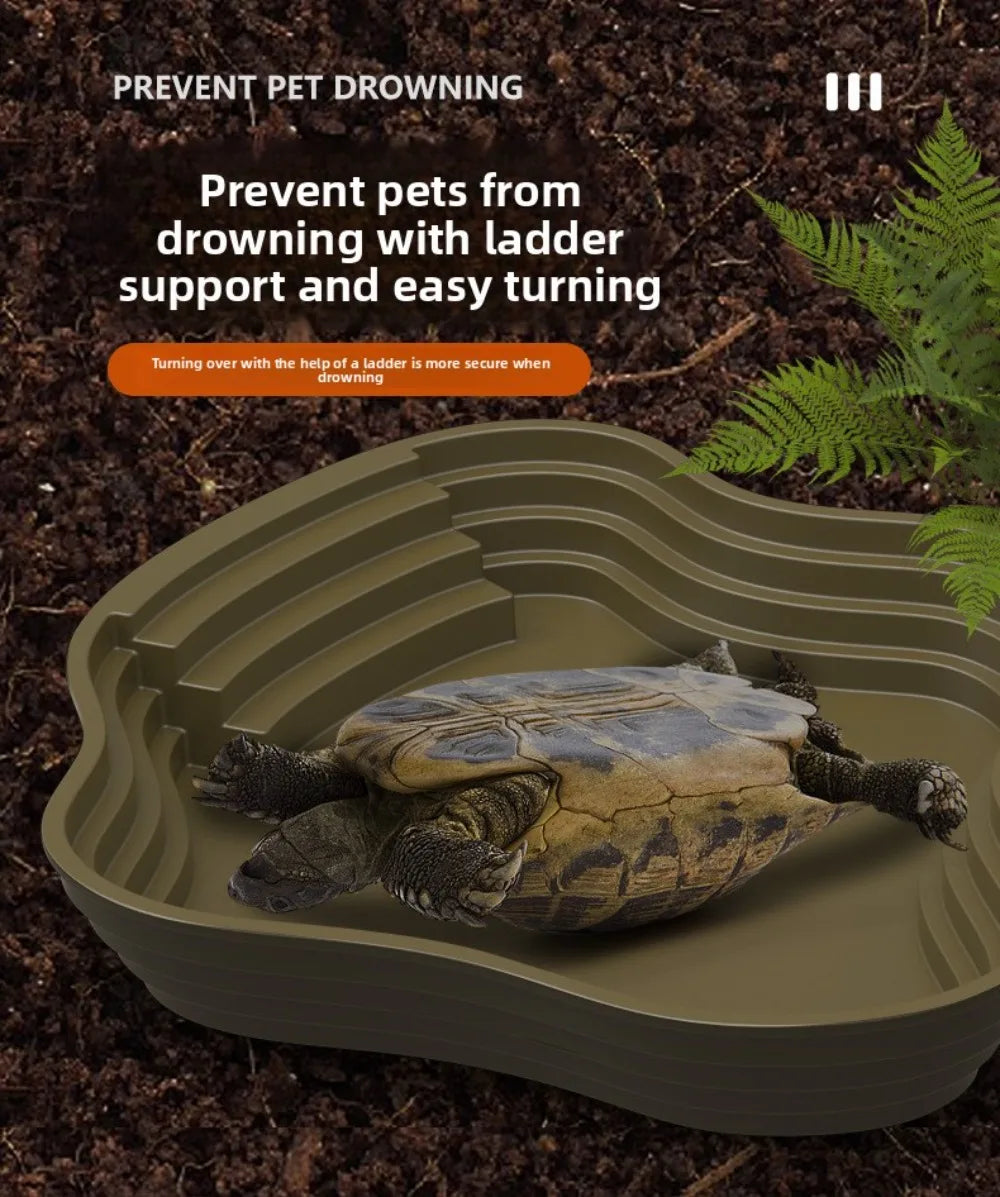 AquaStep Dubbelzijdige Schildpad Water- & Voerbak – Multifunctionele Reptielenbadkuip met Trapontwerp