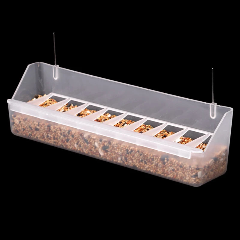Vogelvoerbak 6-vaks hangend β Transparante kunststof duiven- & kippenvoeder
